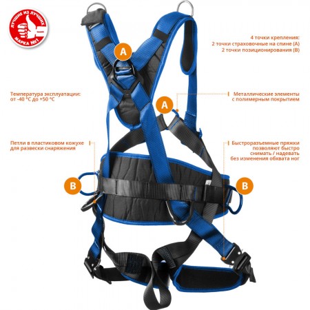 Страховочная привязь «ЗУБР» – надежное средство защиты от падения с высоты.