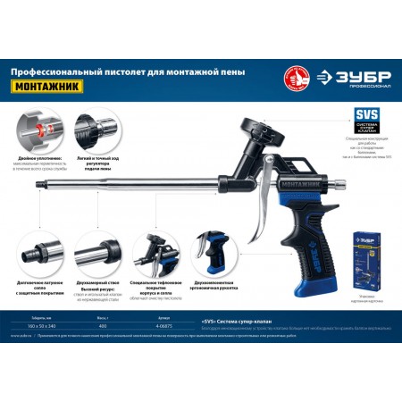 Применяется для нанесения полиуретановой пены, упакованной в баллоны.