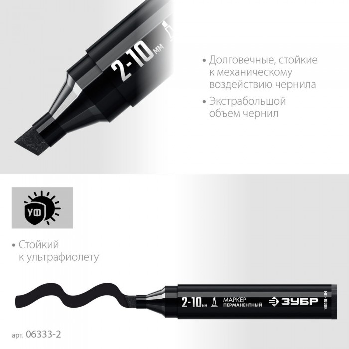 Перманентный маркер клиновидный МП-1000К черный, 2-10 мм ЗУБР 06333-2