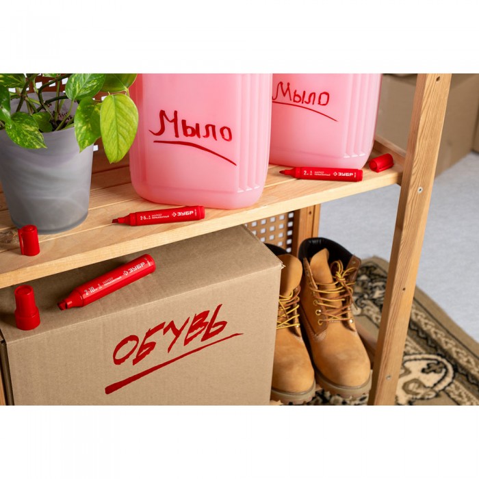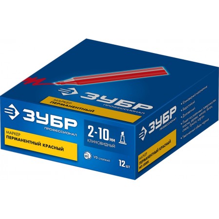 Перманентный маркер клиновидный МП-1000К красный, 2-10 мм ЗУБР 06333-3