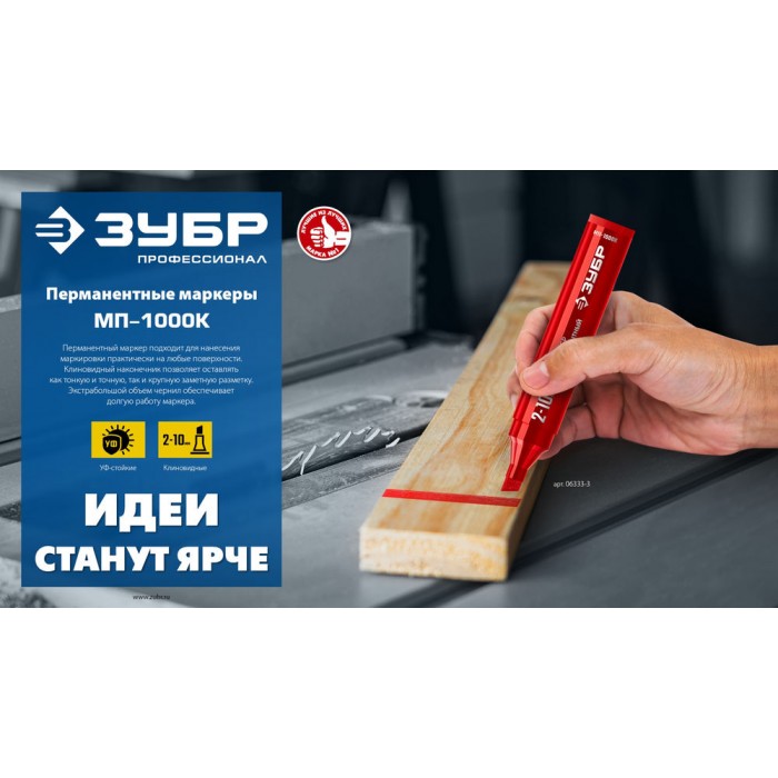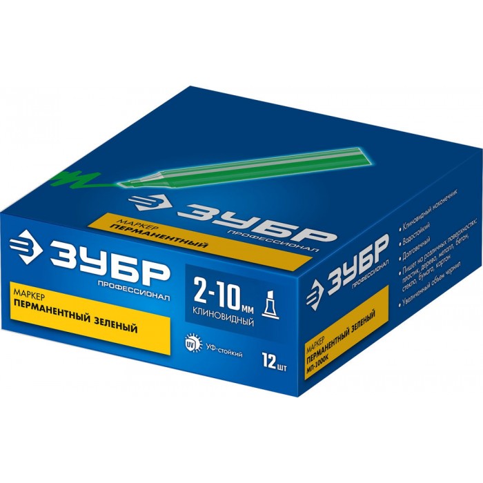 Маркер перманентный с клиновидным наконечником. Экстра-большой объем заливаемых чернил делает данный маркер самым долговечным среди перманентных маркеров ЗУБР. Так как перманентный маркер пишет практически на любой поверхности, он применяется в различных сферах, где требуется нанести надпись, рисунок, знак или указатель.