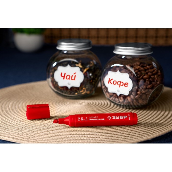 Маркер перманентный с клиновидным наконечником. Увеличенный объем заливаемых чернил делает данный маркер более долговечным. Так как перманентный маркер пишет практически на любой поверхности, он применяется в различных сферах, где требуется нанести надпись, рисунок, знак или указатель.