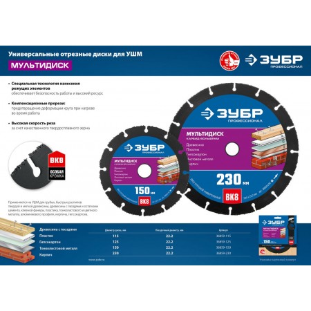 Универсальный отрезной диск для УШМ ЗУБР МУЛЬТИДИСК это многоцелевой инструмент для решения разнообразных задач при проведении строительных и ремонтных работ