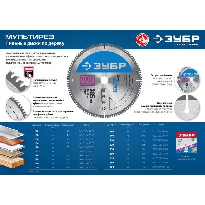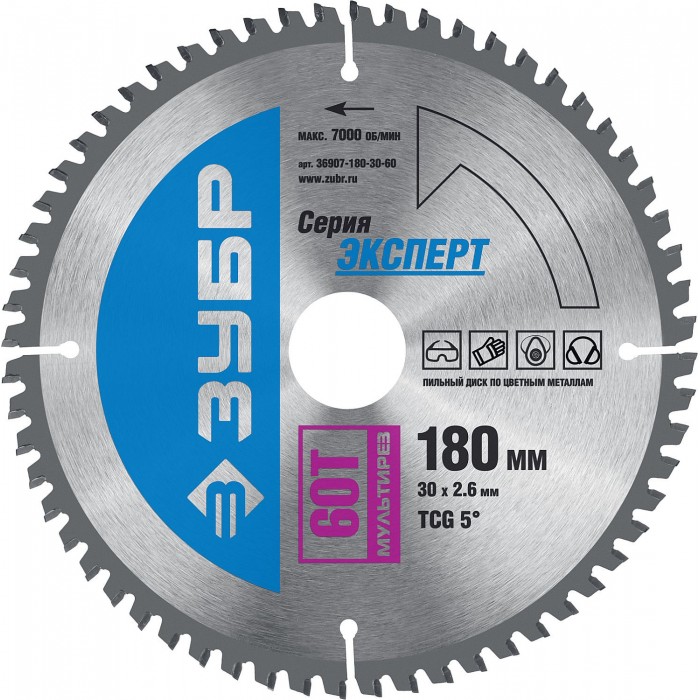 ЗУБР Мультирез, 180 x 30 мм, 60Т, пильный диск по алюминию, Профессионал (36907-180-30-60)