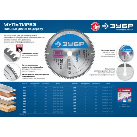 ЗУБР Мультирез, 185 x 30 мм, 60Т, пильный диск по алюминию, Профессионал (36907-185-30-60)