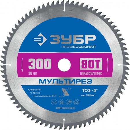 Пильный диск по алюминию Мультирез, 300 х 30 мм, 80Т ЗУБР Профессионал 36907-300-30-80_z01
