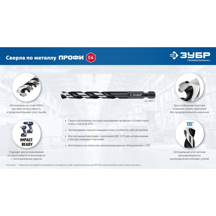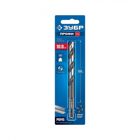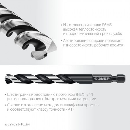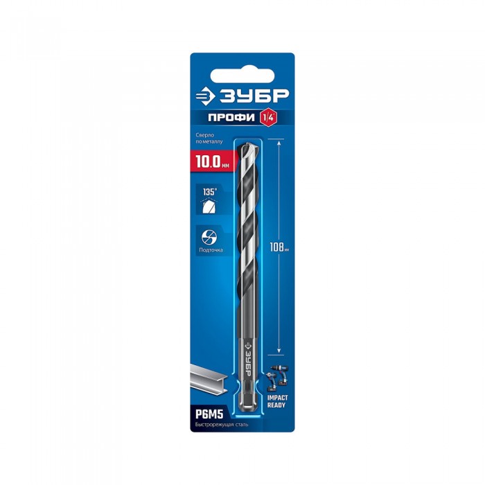 Сверло по металлу НЕХ-1/4", d 10.0 х 133 мм, для винтовёртов и шуруповертов IMPACT READY ЗУБР 29623-10_z01