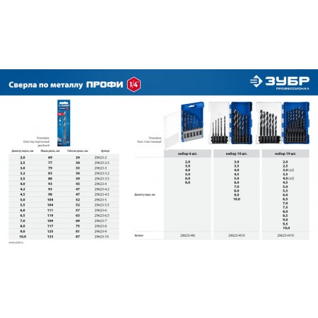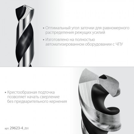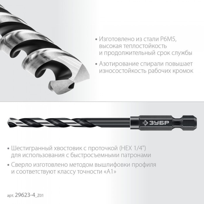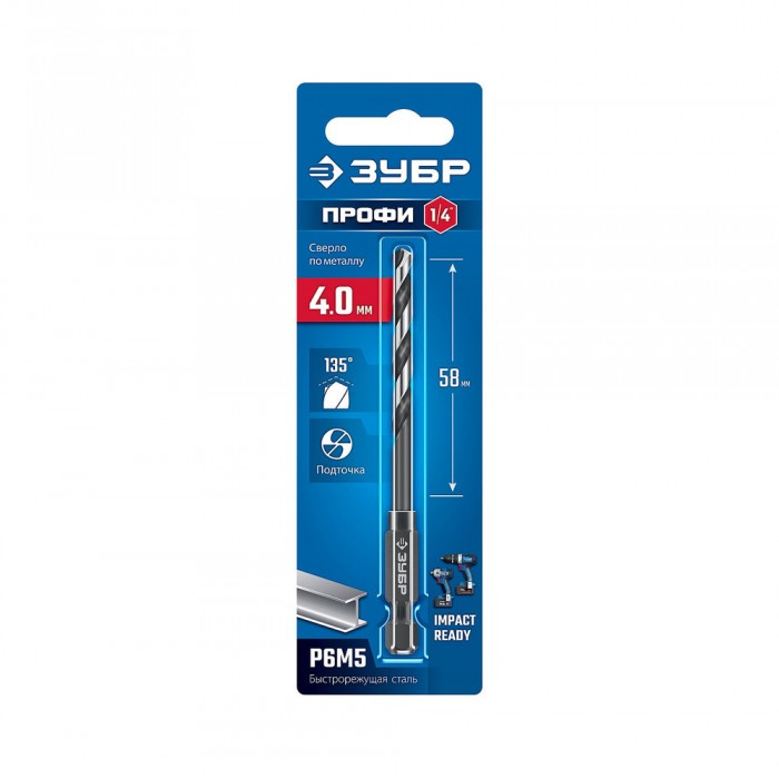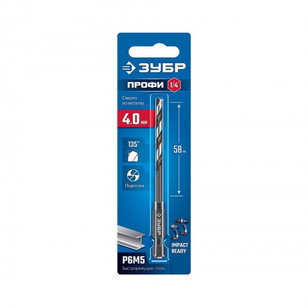 Сверло по металлу НЕХ-1/4", d 4.0 х 93 мм, для винтовёртов и шуруповертов IMPACT READY ЗУБР 29623-4_z01