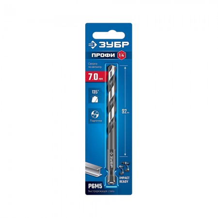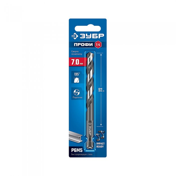 Сверло по металлу НЕХ-1/4", d 7.0 х 109 мм, для винтовёртов и шуруповертов IMPACT READY ЗУБР 29623-7_z01