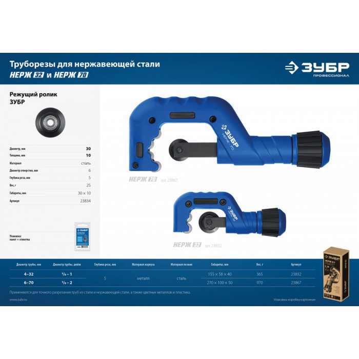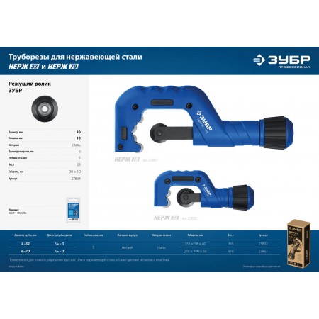 Ролик режущий Нерж-32 и Нерж-70 для трубореза (арт. 23832, 23867) ЗУБР Профессионал 23834