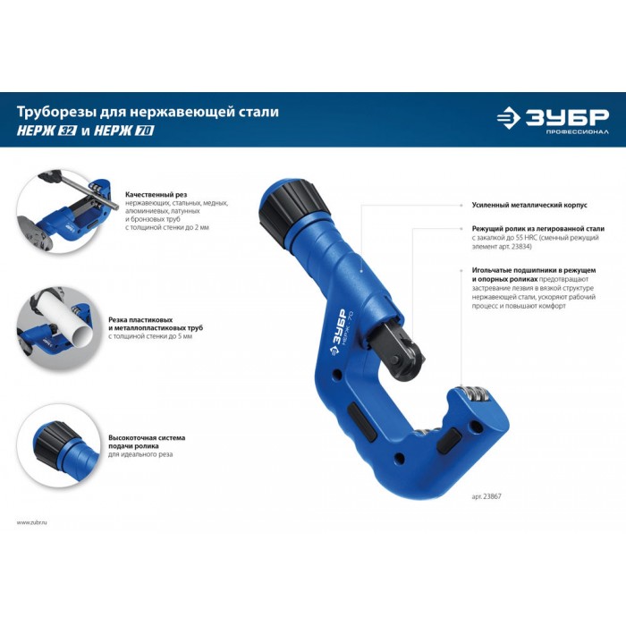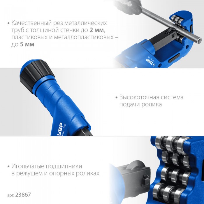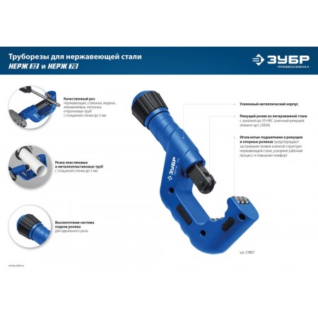 Профессиональный инструмент для труб из нержавейки. Инновационная модель на подшипниках помогает легко, точно и чисто разрезать трубы из нержавеющей стали, а также других труб. В отличии от всех остальных труборезов, конструкция с подшипниками в роликах помогает труборезу не застревать в взякой структуре нержавеющей стали.