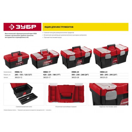Пластиковый ящик для инструментов 500 х 250 х 260 мм 20" ЗУБР НЕВА-20 38323-20