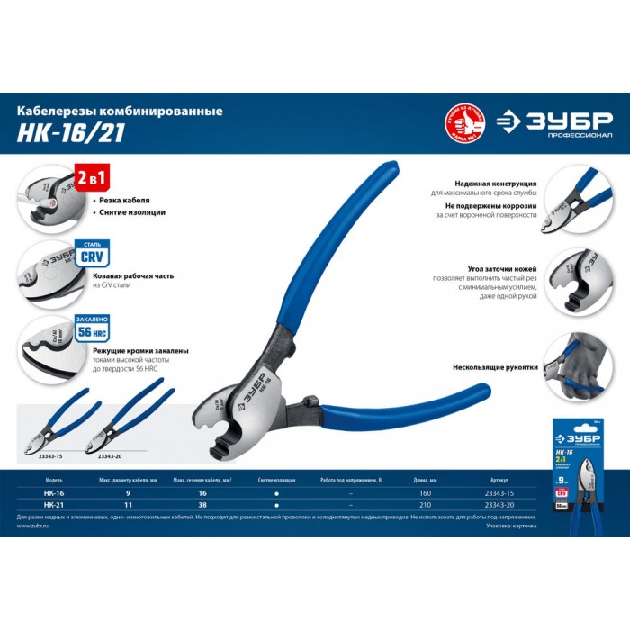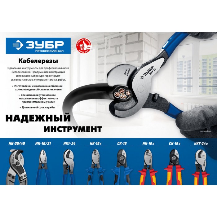 Кабелерезы ЗУБР изготовлены из высококачественной стали, предназначены для профессионального применения. Обладает повышенным ресурсом, обеспечивает высокое качество электромонтажных работ.