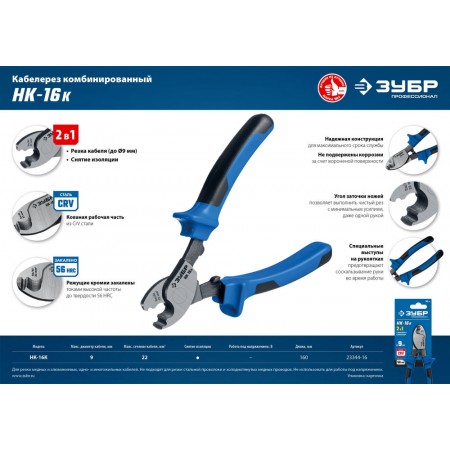 Кабелерезы ЗУБР изготовлены из высококачественной стали, предназначены для профессионального применения. Обладает повышенным ресурсом, обеспечивает высокое качество электромонтажных работ.