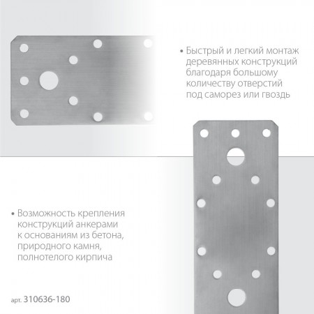 • Большое количество отверстий под гвоздь способствует легкому и быстрому креплению пластины