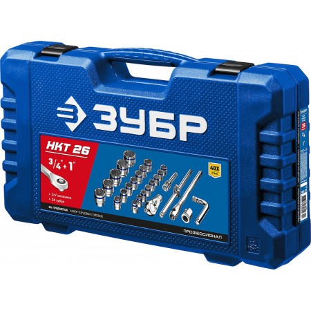 Набор инструмента для крупногабаритной техники 26 предм. 3/4"+1" Профессионал ЗУБР НКТ-26 27660-H26