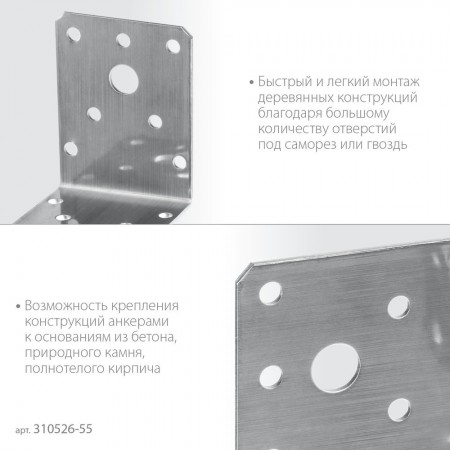 • Большое количество отверстий под гвоздь способствует легкому и быстрому креплению угла
