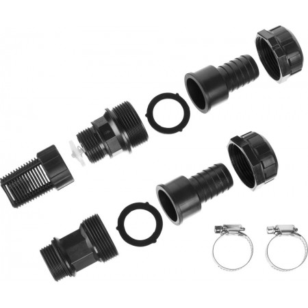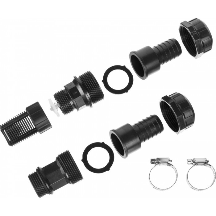 Набор арматуры позволяет собрать комплект для откачки воды из различных водоёмов. Подходит к всасывающим шлангам с внутренним диаметром 1″, подключается к насосу с помощью резьбового соединения 1″. Состоит из обратного клапана с фильтром для воды, адаптера для подключению к насосу и двух хомутов. Фитинги из ударопрочного пластика и хомуты из нержавеющей стали обеспечивают высокую надёжность соединений и гарантирует продолжительный срок службы изделия.
