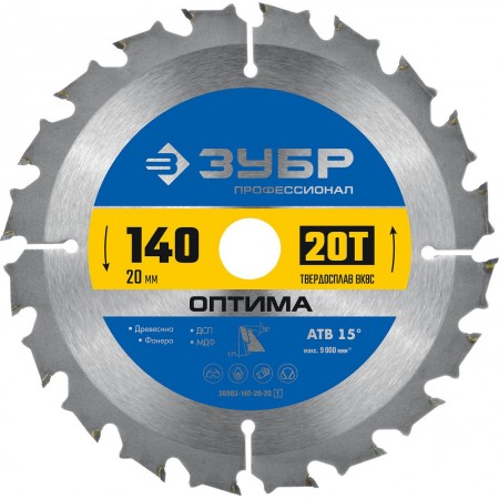 Диск пильный по дереву Оптима, 140 х 20 мм, 20T ЗУБР Профессионал 36903-140-20-20_z01