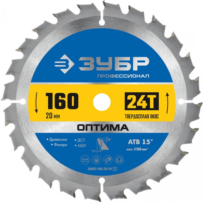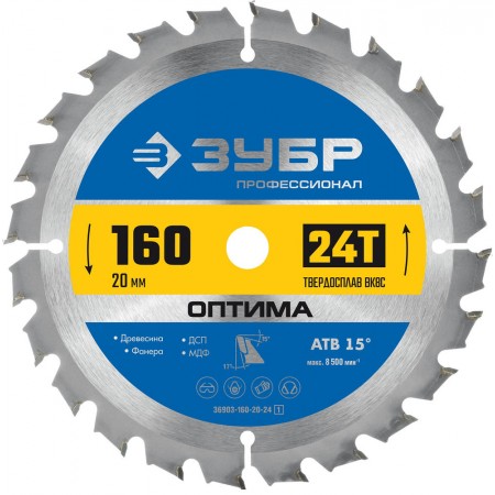 Оптима - универсальный пильный диск, для быстрого распила всех типов древесины. Применяется для распила твердых и мягких пород дерева, клеевых плит, древесно-стружечных плит и МДФ( в том числе облицованных натуральным шпоном, меланиновой пленкой. бумагой. пластиком и др.)фанеры и облицованной фанеры