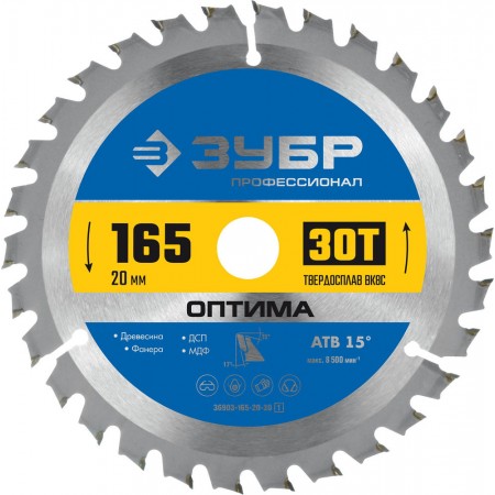Диск пильный по дереву Оптима, 165 х 20 мм, 30T ЗУБР Профессионал 36903-165-20-30_z01