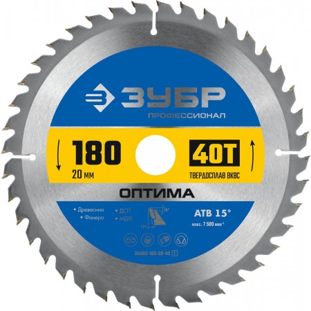 Диск пильный по дереву Оптима, 180 х 20 мм, 40Т ЗУБР Профессионал 36903-180-20-40_z01
