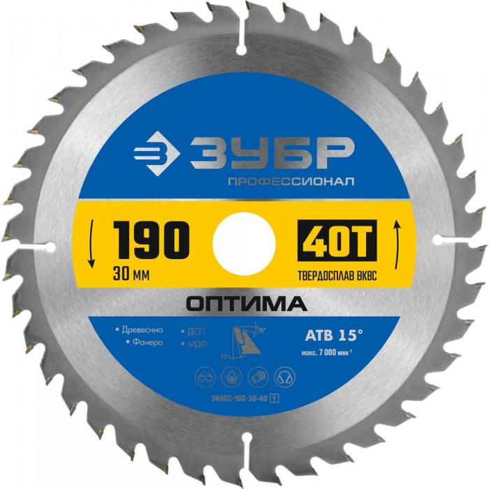 Диск пильный по дереву Оптима, 190 х 30 мм, 40Т ЗУБР Профессионал 36903-190-30-40_z01