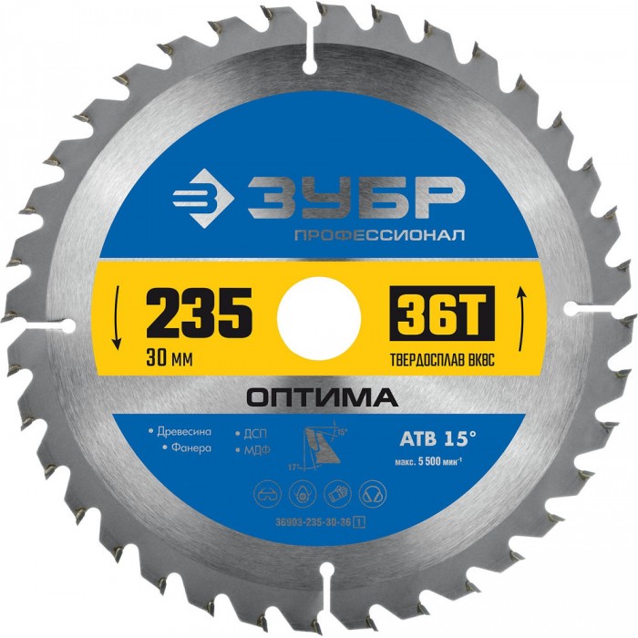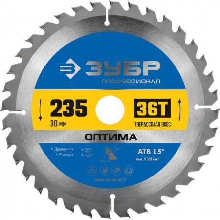 Диск пильный по дереву Оптима, 235 х 30 мм, 36Т ЗУБР Профессионал 36903-235-30-36_z01