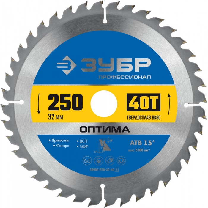 Диск пильный по дереву Оптима, 250 х 32 мм, 40Т ЗУБР Профессионал 36903-250-32-40_z01