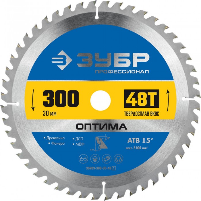 Диск пильный по дереву Оптима, 300 х 30 мм, 48Т ЗУБР Профессионал 36903-300-30-48_z01
