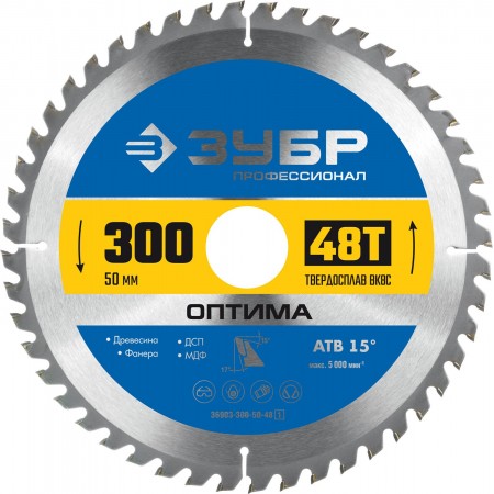 ЗУБР Оптима, 300 x 50 мм, 48Т, пильный диск по дереву, Профессионал (36903-300-50-48_z01)