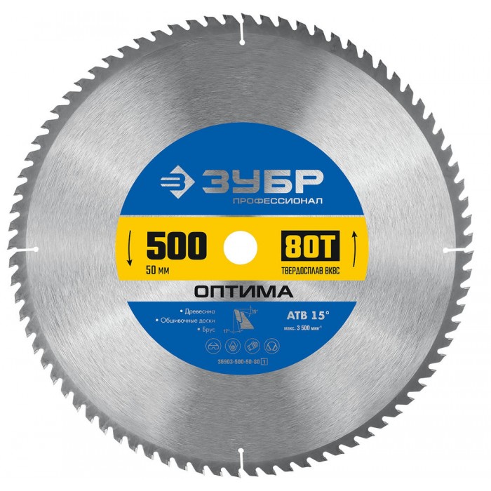 Диск пильный по дереву Оптима, 500 х 50 мм, 80Т ЗУБР Профессионал 36903-500-50-80_z01