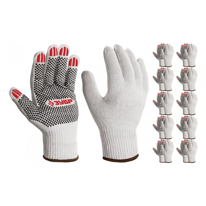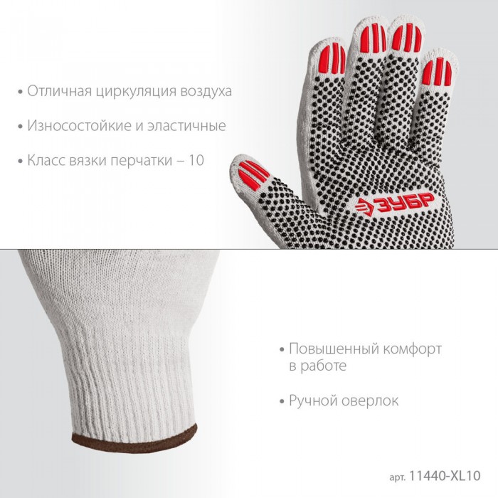 Перчатки х/б ОПТИМА, XL (10), с ПВХ покрытием (точка), 10 класс, 10 пар ЗУБР 11440-XL10