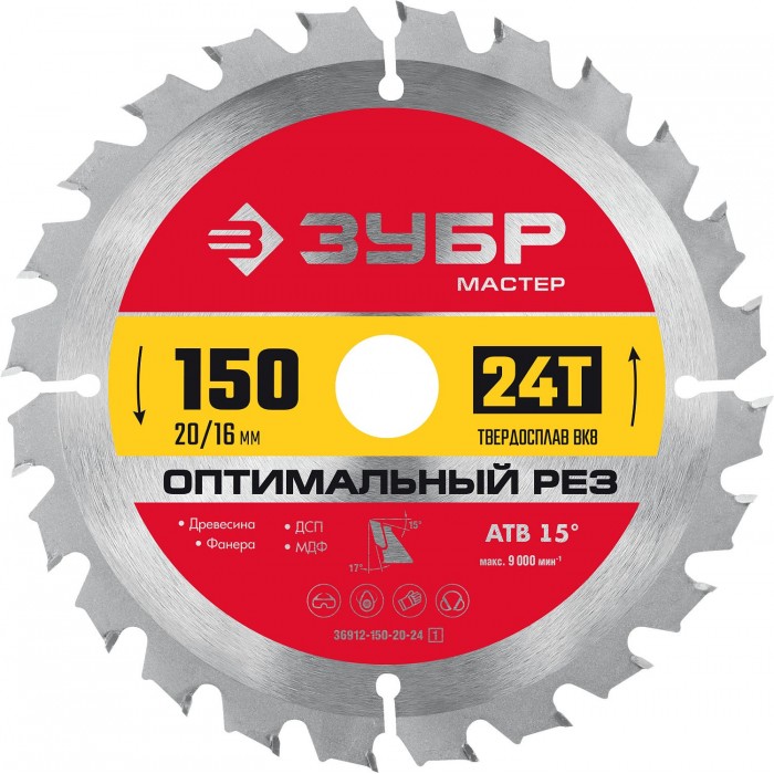 ЗУБР Оптимальный рез, 150 x 20/16 мм, 24Т, пильный диск по дереву (36912-150-20-24_z01)