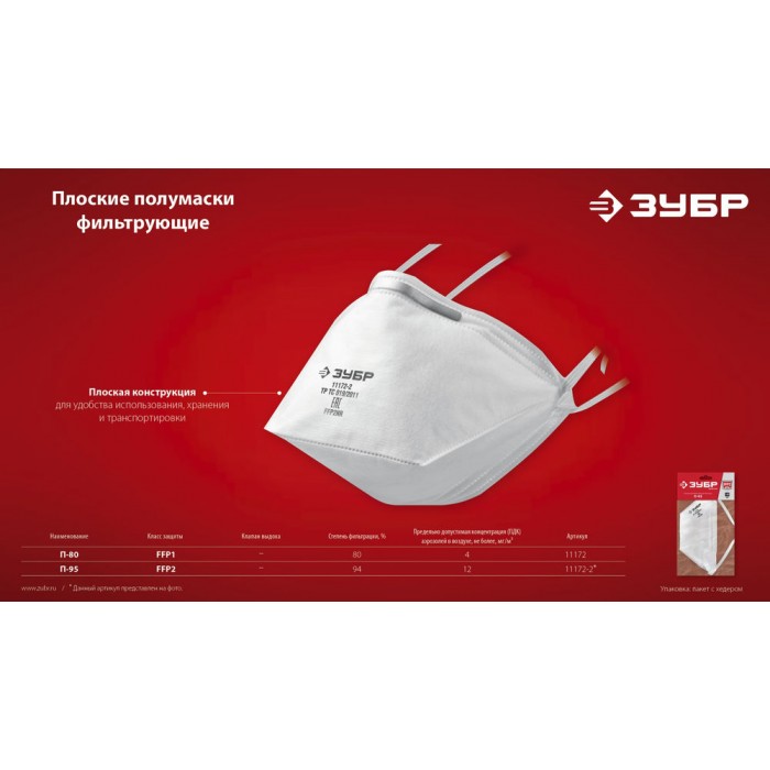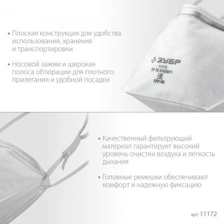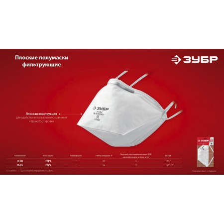 Полумаска фильтрующая плоская класс защиты FFP1 ЗУБР П-80 11172