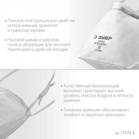 - Складная многослойная конструкция и удобный носовой зажим обеспечивают плотное прилегание полумаски к лицу