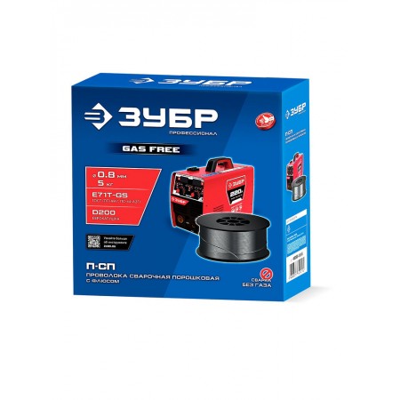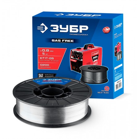 Проволока сварочная порошковая с флюсом d 0.8 мм, 5 кг, тип E71T-GS Профессионал ЗУБР П-СП 40080-0.8-5