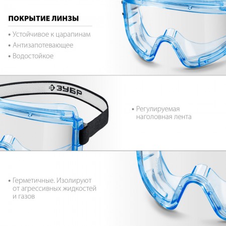 - Герметичные очки изолируют подочковое пространство защищая от агрессивных жидкостей и газов