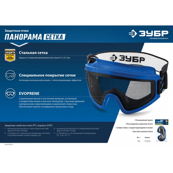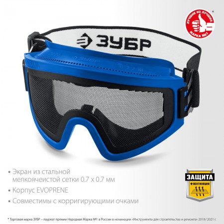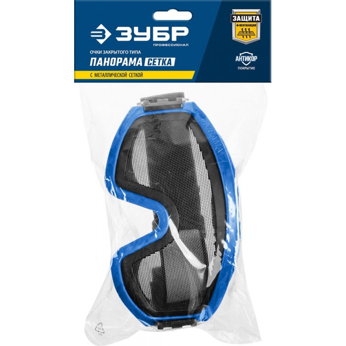 Очки защитные закрытые экран стальная мелкоячеистая сетка ЗУБР ПАНОРАМА СЕТКА Профессионал 110234