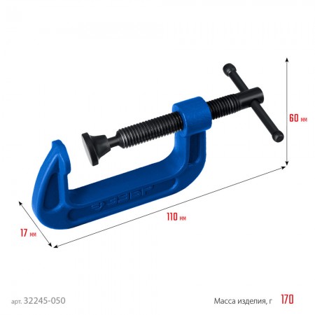 Струбцина тип С G-образная 50 мм чугунная ЗУБР ПCС-50 Профессионал 32245-050