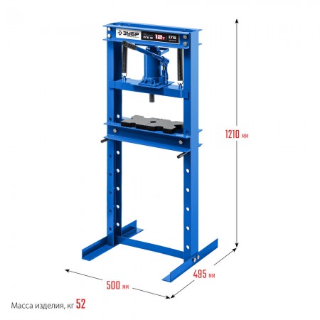 Пресс ЗУБР - мощный инструмент для запрессовки деталей. Отличается прочной металлической конструкцией. Широкое Н-образное основание надежно крепится к полу анкерными болтами. Силовым элементом пресса является домкрат, который при работе опускает подъемную платформу и запрессовывает деталь