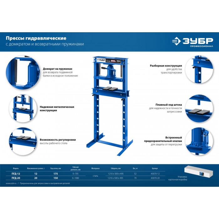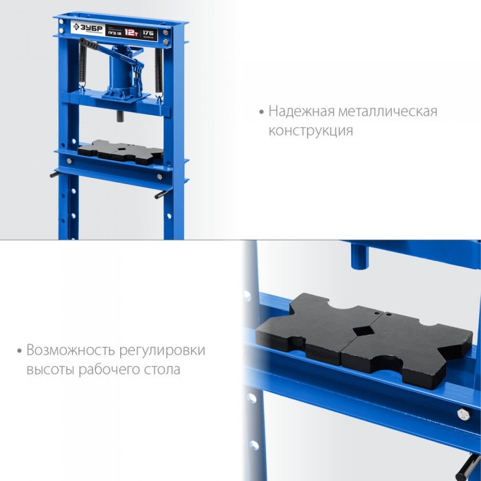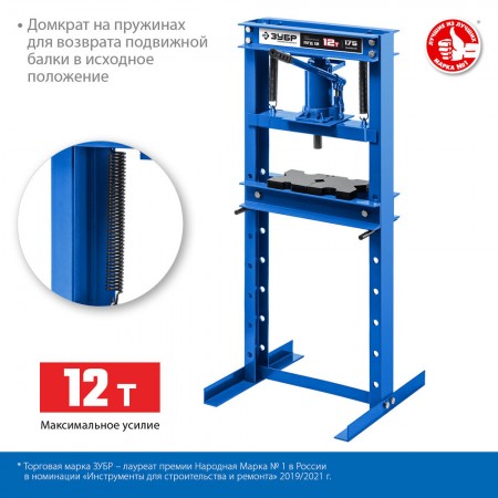 Пресс гидравлический 12 т с домкратом и возвратными пружинами ЗУБР ПГД-12 Профессионал 43070-12