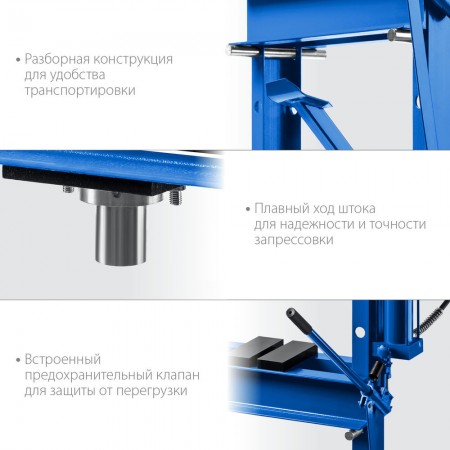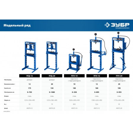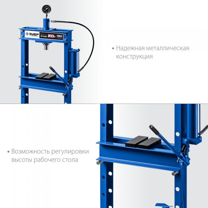 Пресс гидравлический 20 т с гидронасосом и манометром ЗУБР ПГН-20 Профессионал 43072-20