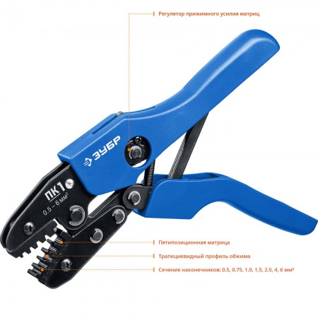 Рычажная конструкция обеспечивает удобство в процессе обжима наконечников