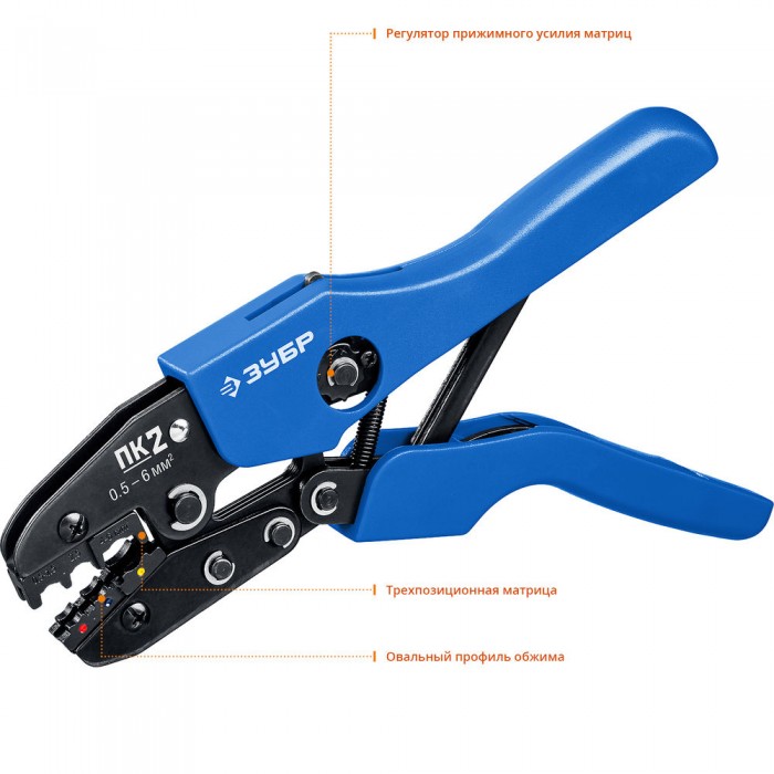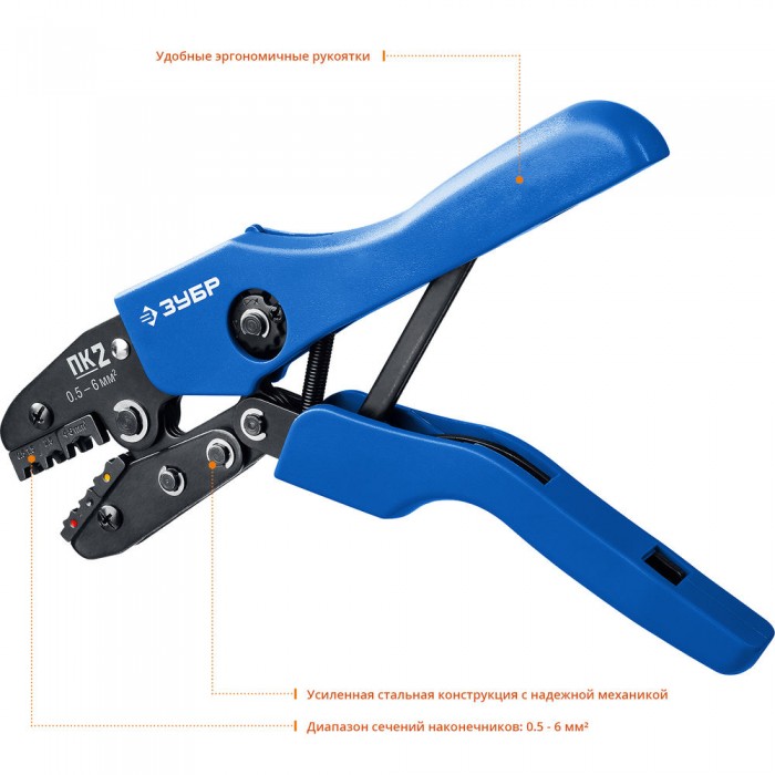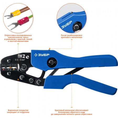 Пресс-клещи для изолированных наконечников и соединительных муфт 0.5 - 6 мм2 ЗУБР ПК-2 Профессионал 45456-2