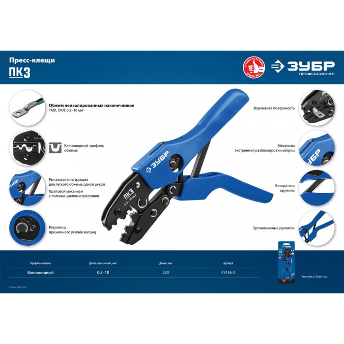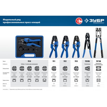 Пресс-клещи для медных наконечников и гильз 0.5 - 10 мм2 ЗУБР ПК-3 Профессионал 45456-3