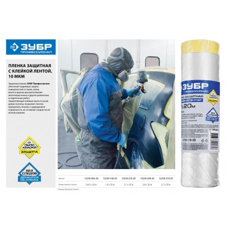 Пленка ЗУБР обеспечит надежную защиту поверхности от пыли, грязи, влаги и краски при выполнении автопокрасочных и других ремонтных и отделочных работ. Закрепляющая клейкая лента по всей длине полотна позволяет плотно прикрепить пленку к защищаемой поверхности, не оставляя следов после использования. ЗУБР - выбор профессионала