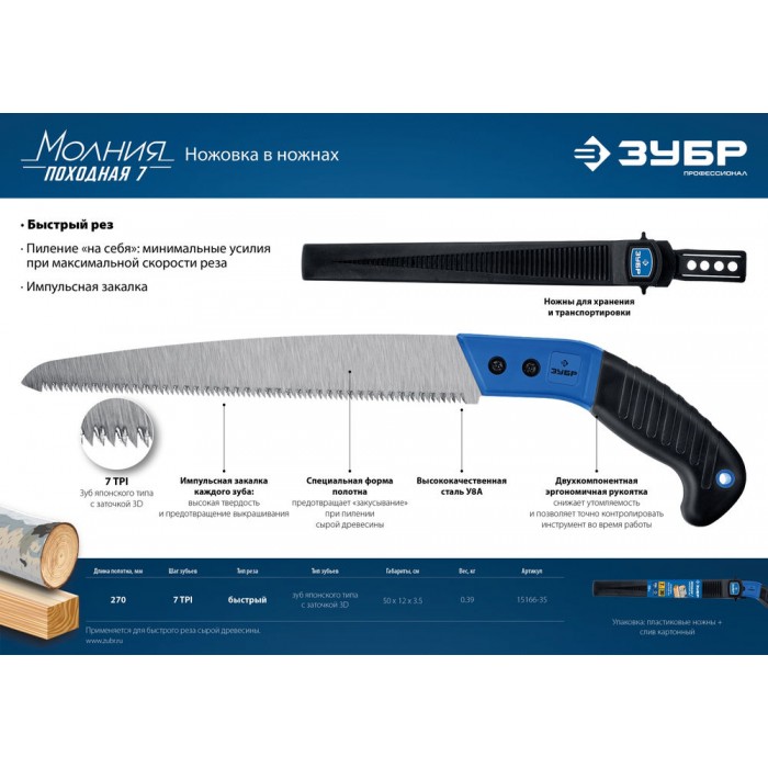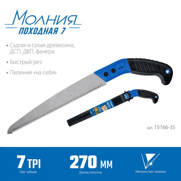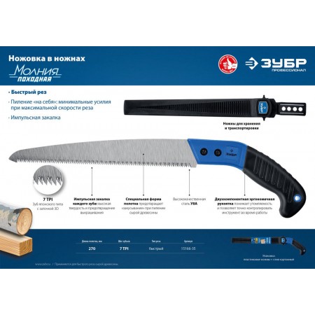 Ножовка Походная 7 для быстрого реза сырой древесины 270 мм ЗУБР Профессионал 15166-35