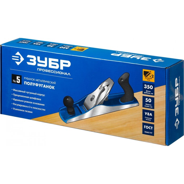 Рубанок металлический полуфуганок 350 x 60 мм №5 ЗУБР Профессионал 18505-35_z02