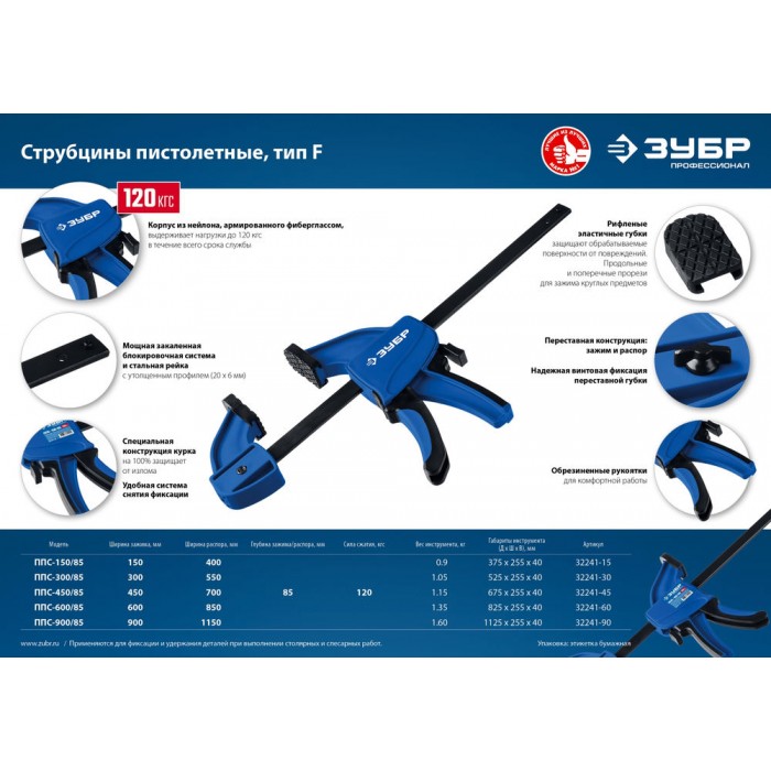Струбцина пистолетная ППС-15/85 150 x 85 мм ЗУБР Профессионал 32241-15